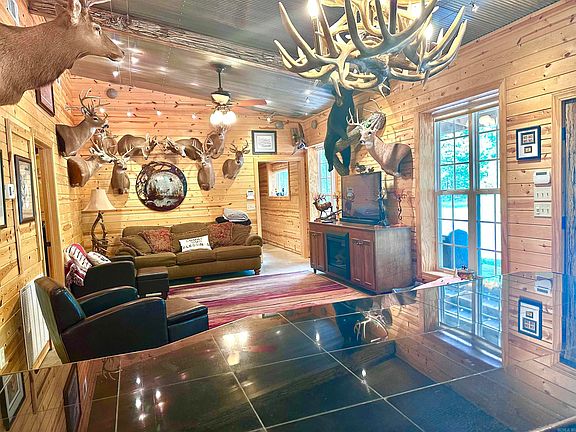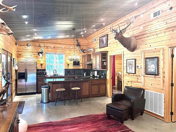 Nestled amidst 11.65 acres of serene landscape, this barndominium offers a unique blend of rustic charm and modern comfort. Surrounded by towering trees, the property is accessed via a winding driveway that adds to its seclusion. The exterior features an inviting outdoor fireplace, perfect for cozy evenings and entertaining. A standout feature is the extra-large 39x42 shop boasting three roll-up doors, ideal for hobbies, storage, or a place to store your party barge. Privacy is paramount here, with the property tucked away from the hustle and bustle, creating a peaceful sanctuary. Inside you will find spacious living area, 3 BR, 3 BA with a touch of countryside elegance, featuring ample natural light and views of the picturesque surroundings. Other features include a 2 car attached garage, covered patio, covered living space which is ideal for outside dining. Whether you envision peaceful retreats or vibrant gatherings, this property offers a unique opportunity to embrace the tranquility of nature while enjoying the comforts of modern living or just a place to escape and unwind. Don’t miss this rare opportunity - the possibilities are endless here!