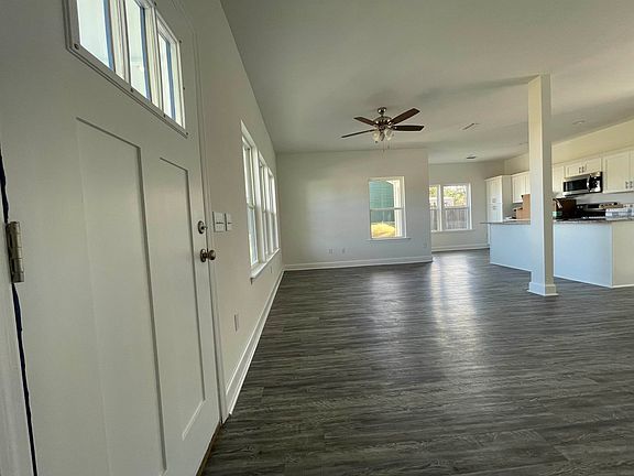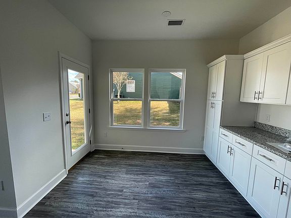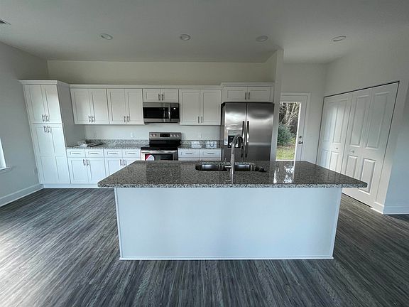 This brand-new home is just waiting for you! Appealing wrap around front porch draws you into the open concept living area. Perfect for entertaining with spacious living room and dining room combination. A bright white kitchen boasts a center island with room for seating at the bar, plus a breakfast nook with a glass door leading to the porch, loads of cabinets, granite counter tops, stainless steel appliances and a large pantry. There is a half a bath downstairs for guest use and a large storage closet under the stairs. Loads of natural light throughout and beautiful full glass door opening onto a private backyard. The master bedroom is located downstairs and features a walk in closet and ensuite bath, double vanity, walk in shower. Each of the three additional bedrooms are nice size, offer loads of light and feature spacious closets. The bathroom is situated off the landing giving each bedroom easy access plus an additional linen closet for additional storage. Nice two car garage with automatic door opener, two zoned central heat and air units (one for upstairs and one for down), ceiling fans, inside utility are just a few of the other highlights.