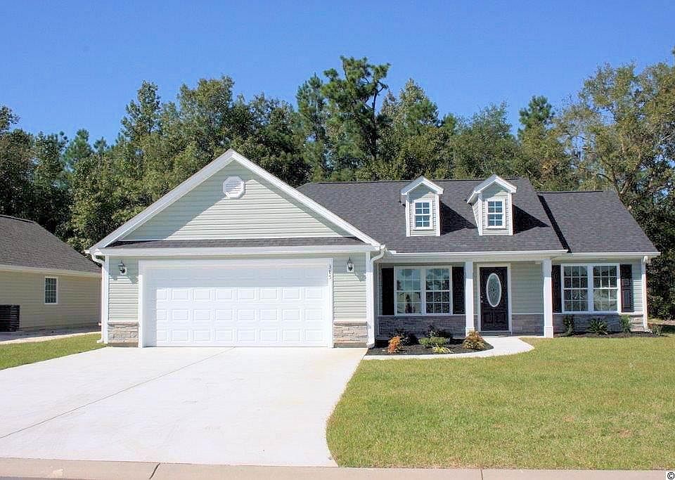 Very popular Hickory 70 open floor plan, 3 bedrooms, 2 baths, entry foyer, split bedrooms, formal dining room with tray ceiling. Great room with vaulted ceiling, ceiling fan with light, lots of windows. Large kitchen has solid wood cabinets with crown molding, knobs, plenty of countertop space, breakfast bar, kitchen nook, stainless steel appliances, recessed lights. Private master bedroom suite has vaulted ceiling, ceiling fan with light, huge L shaped walk in closet, bath with double bowl sinks, garden tub, obscure/privacy window , and separate walk in shower. Laundry room, fully finished and painted two car garage with garage door opener and pull down stairs to attic storage. Smooth ceilings, 30 yr architectural roof shingles, sodded yard. For outdoor enjoyment this home features a covered 5' x 16'10" front porch and a rear screened porch. Desired Aynor school district. Quaint, friendly small town country living within a few minutes of Conway and only 29 miles to Myrtle Beach. Video is for illustrative purposes only and may be of similar home built elsewhere. Square footage is approximate and not guaranteed. Buyer is responsible for verification.