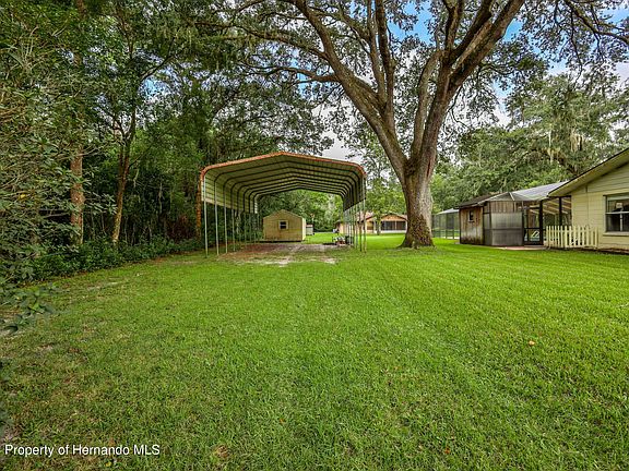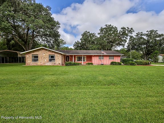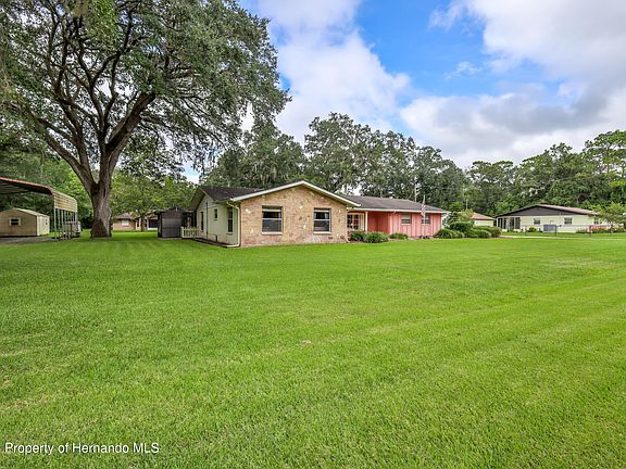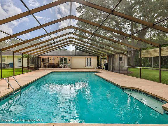 Original owner! Feel the love, they have carefully maintained their home and have updated as they went along. Updates include an updated electrical panel as 2/23, all windows (except garage) and exterior doors have been replaced, they installed beautiful wood flooring that runs from the entry, to the family room, thru the kitchen and into the dining nook. You won't find many pools this size anymore either! Per the owner it is 18'x36' and 8' at the deep end. They added a ''bath house'' which features a half bath and storage with an outside shower on the side. The lot itself is highest lot in Masaryktown (per owner) but level. The .62 Acre lot also features a RV Parking carport (24x40) with the electric (30 Amp) already in place. The large shed on the property also has electric. This is a Living Room/Family Room layout with the kitchen open to the family room. The kitchen cabinets and counter top (granite) have been updated with all appliances to convey with the home. The laundry room is quite spacious with the washer/dryer also conveying. The garage offers additional storage areas plus a work room that also holds the water softener and well tank. The owner is also leaving the happy new owner a generator that is already wired to the home for those occasional storms. The relaxing family room has paneled walls; But! Per the owner, there is drywall underneath, just in case paneling isn't your exact style! All bedrooms are a great size with the Master Bedroom featuring French Doors out to the screened pool area. Being a homeowner in Masaryktown comes with additional perks! There is a Community Center where all sorts of activities take place, a playground with swing sets, slides and more. There are tennis courts along with a basketball court. Relax at the picnic tables and watch the fun. Right across the street is the softball field! Last but not least, don't forget about the warm and welcoming Cafe Masaryktown., a local favorite. Come and join the wonderful community of Masaryktown, just outside of Brooksville with easy access to Spring Hill and Tampa.
