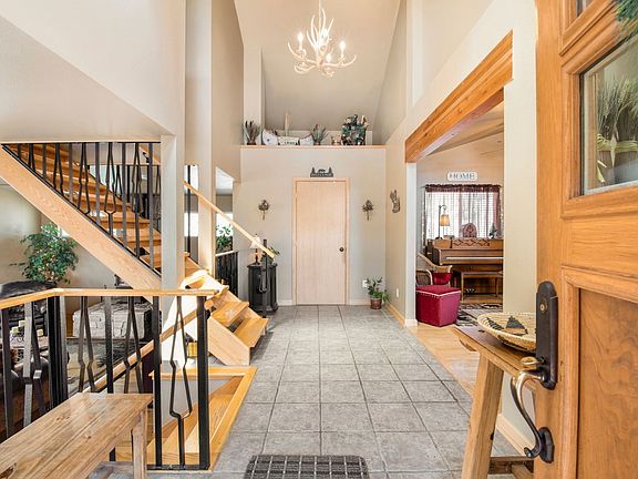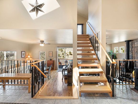Waterfront. multi-level mountain home features an inviting entry, high ceilings; Spacious living room with water views, wood burning stove, wood floors; Master bedroom suite with walk-in closet , wood beams; Separate dining area and 26 X 15 rec room/flex space in the lower level walkout. Oversized patio doors, plenty of windows and skylights let the sunshine and views in. 2.58 acres and a 20' x 12' shed/workshop with power. Relax on the deck overlooking Batterson Lake or walk down and throw in a line! Plentiful bird and wildlife- You will enjoy watching the deer, heron, ducks among others that often visit the water. Year 'round access, only 15 minutes to Red Feather Lakes and an easy 45-50 minute commute to Fort Collins.