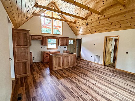 New build cabin on a nice big and very usable lot in an established neighborhood will make you feel right at home. Two bedroom split floor plan with two full baths, great room, nice open kitchen with large island and granite counters, spacious laundry room with storage space, beautiful vaulted wood ceilings, exposed beams and stone wood burning fireplace. Front covered entry porch, covered rear porch and open deck overlooking wooded wonderland. Master bath features a tiled walk in shower and walk in closet in the bedroom. Great location between Blairsville GA and Murphy NC plus deeded access to Wells Lake.