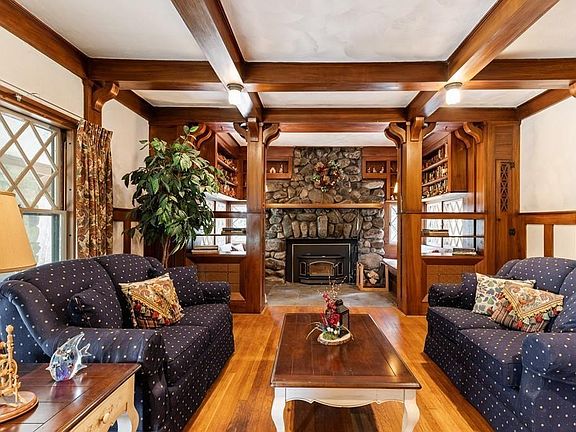 385 Park Street is a home like no other! A long private driveway welcomes you to this classic ARTS and CRAFTS expansive bungalow that is impressively sited on a 1.5 acre lot tucked behind mature trees. You'll be intrigued just driving up the driveway! Eye catching features that showcase the home's exterior include stone walls, columns and chimney, interesting roof lines and shingled siding. Once inside you'll be drawn to the period craftsman details: 9' ceilings, original gumwood columns, wainscoting, coffered ceilings, custom built-ins and more! With over 3000 sf, 4 bedrooms including a huge first floor master bedroom suite with 2 walk-in closets, vaulted ceilings, and an ensuite bathroom the possibilities for this house are endless. The home is being presented as is, with yesterday's charm and elegance and everything you will need to create today's masterpiece!!
