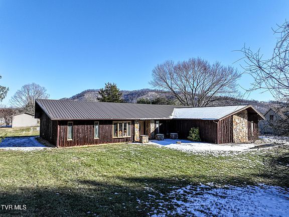 .Welcome to 385 Phyllis Drive in beautiful East Tennessee! Wake up in the morning and enjoy your coffee while viewing gorgeous mountain views...or...stroll to the back of your property with your golf cart, walk 100 yards, and start playing golf on the Clinch View Golf and County Golf course. Yes, right in your own back yard! This property has 2.2 acres in a peaceful neighborhood which is close to recreation, shopping, healthcare and LAKES!! Bring your own boat and launch it less than a 10 minute drive! Cherokee Lake is massive and offers fishing, skiing and relaxing! The home, with 2300 finished square feet all on one level, features 3 bedrooms, 2 full baths, a living room, a den with fireplace, which can be converted to electric or gas, an extra room for dining, an office, or an extra TV room. There is a large 2 car attached garage offering new garage doors with openers for easy access. A laundry area, and an open eat-in kitchen completes the floor plan. A 12'x18' outbuilding is located behind the home which would serve as a garage, workshop, chicken coup or storage. It needs some TLC, but it offers great possibilities. New luxury Vinyl Plank flooring has been installed throughout, as well as, newer metal roof, newer kitchen refrigerator, newer washer, some new light fixtures, and plumbing. The driveway is concrete with plenty of parking availability. This home is sturdy as a rock and very well insulated. It is move-in ready but waiting for a new buyer to put his or her modern touches on it. This home has BIG bedrooms, BIG bathrooms and a LARGE den for family gatherings. Add a back patio and a wooden deck for evening enjoyment or build a pool... this property is unrestricted and has great potential. Don't miss this property!