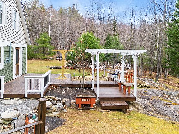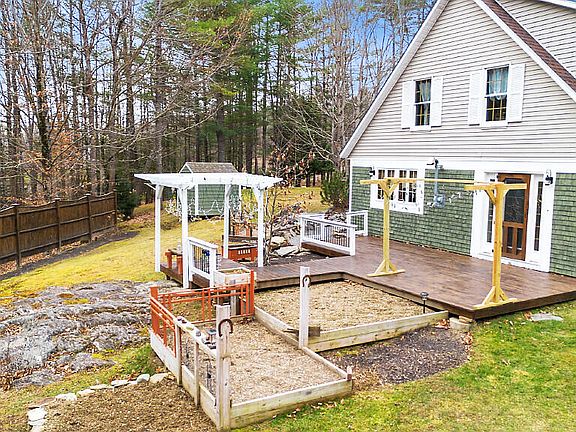 Step outside to experience the breathtaking landscaping, including a natural stone wall and raised bed gardens that are easily accessible from the side deck, adjacent to the dining and kitchen area—perfect for enjoying fresh, homegrown fruits and vegetables during the summer months. Meandering nature trails weave through the property, offering serene connections to the surrounding beauty of the homestead.