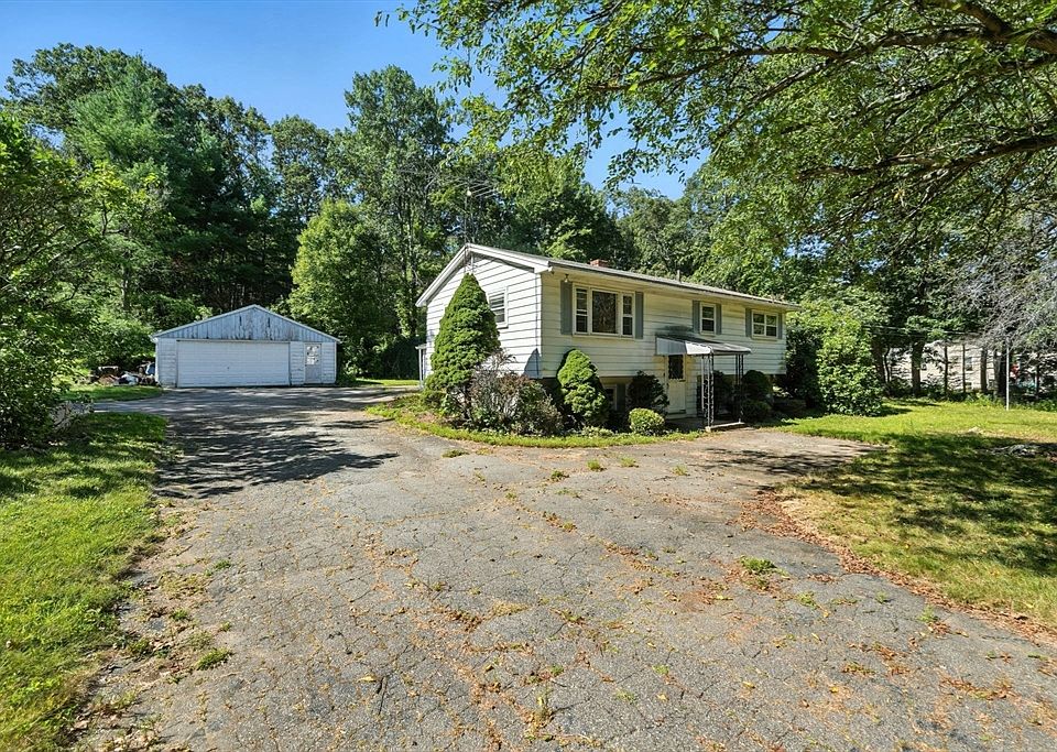 ** OFFER DEADLINE MON (9/8/25) @ 12P ** Amazing opportunity in Uxbridge! This spacious 3 Bed/2 Bath has over 1300 square feet of living space. Sitting on a little over two acres, this home has it all. A large living room w/picture window overlooking your spacious front yard flows into your dining area and into the kitchen. There is a large bathroom on the first floor ready for your personal touch, and two large bedrooms both with hardwood floors. The lower level has a great rumpus room, complete with a bar area and plenty of room for anything from game tables to a second living/family area, a washer/dryer hookup, the third bedroom and the second full bath. Another great perk to this home is the large detached garage, a patio and huge backyard for entertaining. Being sold 'as-is', verbally failed septic system, Title V is buyer's responsibility. Will not qualify for all financing (solely due to the verbally failed septic). Engineered/approved septic plans in hand (see attached)!