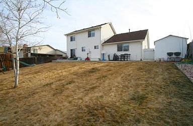 Welcome Home to this wonderfully updated home with sought-after main floor master bedroom. Two-story great room, open layout overlooking large, private backyard. Gorgeous Aspen and pine trees create privacy, while the large patio make it ideal for outdoor entertaining. 2-car garage with add. RV parking. Beautifully updated throughout interior, including designer tile backsplash, tile floors in kitchen and baths, and custom wall painting. Newly finished basement includes 2 additional bedrooms, full bath, and rec room. New roof installed in 2010 with warranty. Great location near parks, playgrounds, hospital, shopping, and highways. You couldn't ask for more! Priced to sell!