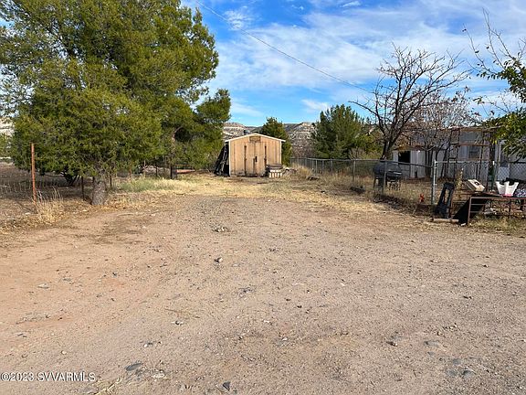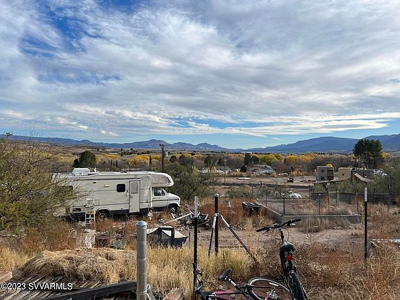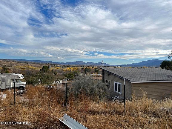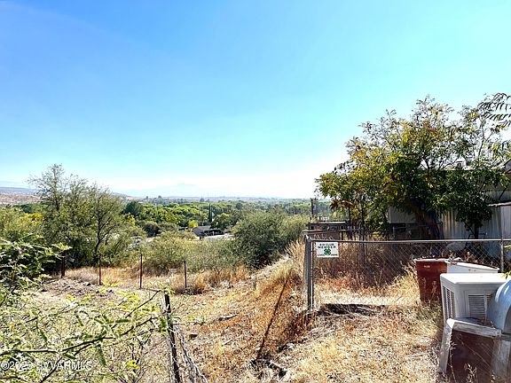 In town location. Great perimeter views. Close to all amenities. End of the road location. Property borders rear of Fort Verde Visitors Center. Older doublewide 3 bedroom, 2 bath 1344 sq. ft., wood stove, evap cooling, zoning is now R1L-35. site built only, If buyer wants to replace home it will have to be site built or modular but not manufactured. Covered front porch. fenced front yard, fenced rear yard, property sold as is. RV parking ok. city water, city sewer, some nice trees on property. Needs work. Needs to be rehabbed. Cash only sale.