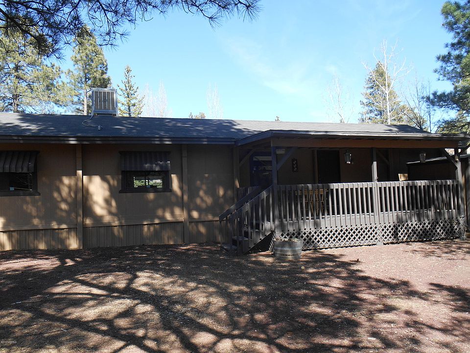 PRICED TO SELL! Wonderful, open concept home. The laminate hardwood throughout expands the entire cabin. Set back on the very large lot on a cul-de-sac, This heavily treed property affords privacy and tranquility. Nicely updated home with three bedrooms and one large, nicely done bathroom. Yard has brand new fence enclosing the entire backyard! Evaporative cooler. Covered front deck and spacious mostly fenced backyard add to the ambiance. The long driveway leading to the home is lined with Ponderosa Pine trees. Nice sized back deck, two sheds with electricity, washer/dryer, newly painted and yard all cleaned up for immediate occupancy!