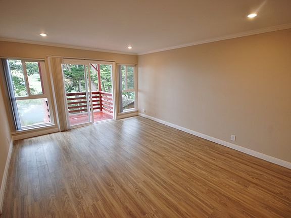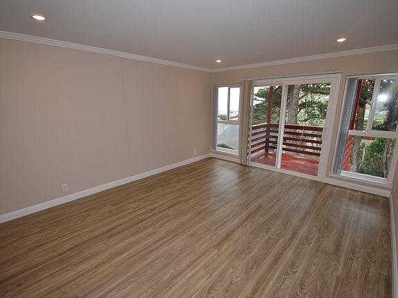 Contact for viewing appointment. Wake up every morning to the ocean air. Double pane windows. Wall of windows in living room open to balcony with tree top view. Wood laminate flooring in living area. New carpet in bedrooms. Soft recessed lighting in living room crown molding. Soft wall colors & recessed lighting. All new kitchen with granite counters quality wood cabinetry stainless steel dishwasher electric range frost free refrigerator & microwave ready remodeled Bath with ceramic tile tub-shower combination & new vanity. 1-car enclosed carport plus large storage closet. Coin laundry. Near Sharp Park Drive and Hwy 1 with easy access to San Francisco. Close to local shopping the Pacifica Pier and Rockaway Beach. Owner pays for water, garbage. Owner prefers a minimum credit score of 700