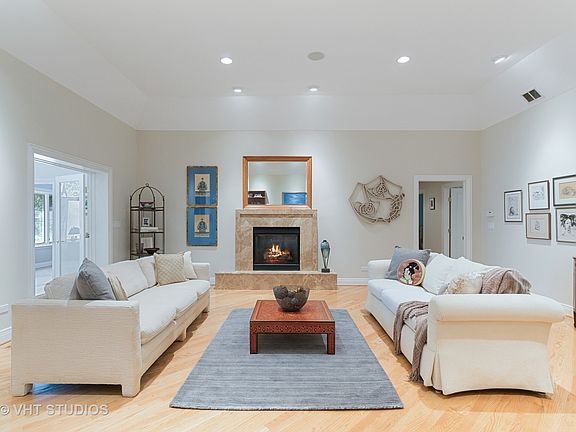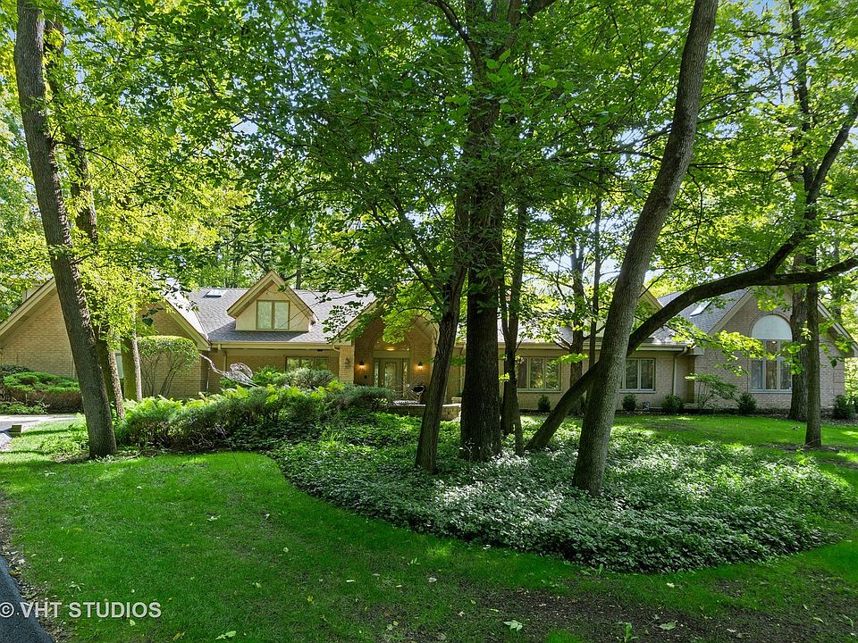 Nestled in the heart of Riverwoods is your all brick (ICF) 5 bedroom, 3 full + 3 half bath, 4 car attached heated garage ranch sanctuary in the woods. This stunning 6553 square foot home sits on 2+ magnificent wooded acres and had a large addition and remodel of the existing home in 2002 including the installation of Radiant heat floors, a whole house Electronic Air Cleaner and Lifebreath Clean Air Furnace (CAF) system. Sunlight abounds with incredible sight lines, dramatic ceiling heights, numerous skylights and oversized windows throughout. Custom gourmet kitchen with top-of-the-line stainless steel appliances & Farmer's sink, granite counters, backsplash and very large island with hand blown Italian glass pendant lighting as well as immense storage capacity and second prep sink together creates this true Chef's kitchen. Adjacent is the breakfast area which flows into a spectacular three seasons room, both with spectacular views of the private yard and woods. As you walk from the kitchen into the heart of the home, you are welcomed into a wonderful oversized family rooms with 20 foot ceilings and adjacent is the equally oversized, warm and gracious living room with 12 foot ceilings, each anchored with an elegant marble hearth/surround fireplace, providing fabulous flexibility for dining, family time and entertaining. Glass paneled French doors provide privacy for the adjacent study. The primary bedroom features a sitting area and marble hearth / surround fireplace, 12 foot ceilings, his and hers walk in closets + cedar closet. Primary bath with floor-to-ceiling marble throughout, his and her vanities, whirlpool tub, large shower with bench and separate toilet room create a serene spa-like experience. The first floor wide hallway leads you to 3 generous sized bedrooms. Two of the bedrooms share a beautiful Jack and Jill bathroom featuring floor-to-ceiling limestone, 2 pedestal sinks, separate shower and soaker tub. The third bedroom has 2 huge closets as well as a private marble bathroom. Flexible second floor offers endless possibilities for a private office, teen suite, in-law/nanny room, exercise area, artist studio...the choice is yours. Half bath can be easily expanded to full bath as piping is already installed for shower. Cozy up in the lower level to a wood burning fireplace in the large recreation room. Immense storage and workroom. Terrific 4 car heated garage. Beautiful mature trees compliment the backyard with a combination on the property of both manicured and prairie style landscape which completes this gorgeous setting. This home is the perfect space for entertaining, everyday living and working from home. New roof and skylights as well as new driveway in 2020. Taxes include the remainder of a Riverwoods special service area fee of $2,807.70 through 2023. Award winning Deerfield schools. Easy access to all major arteries, trains and transportation, as well as restaurants and shopping. Imagine...all your new home needs is you.