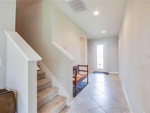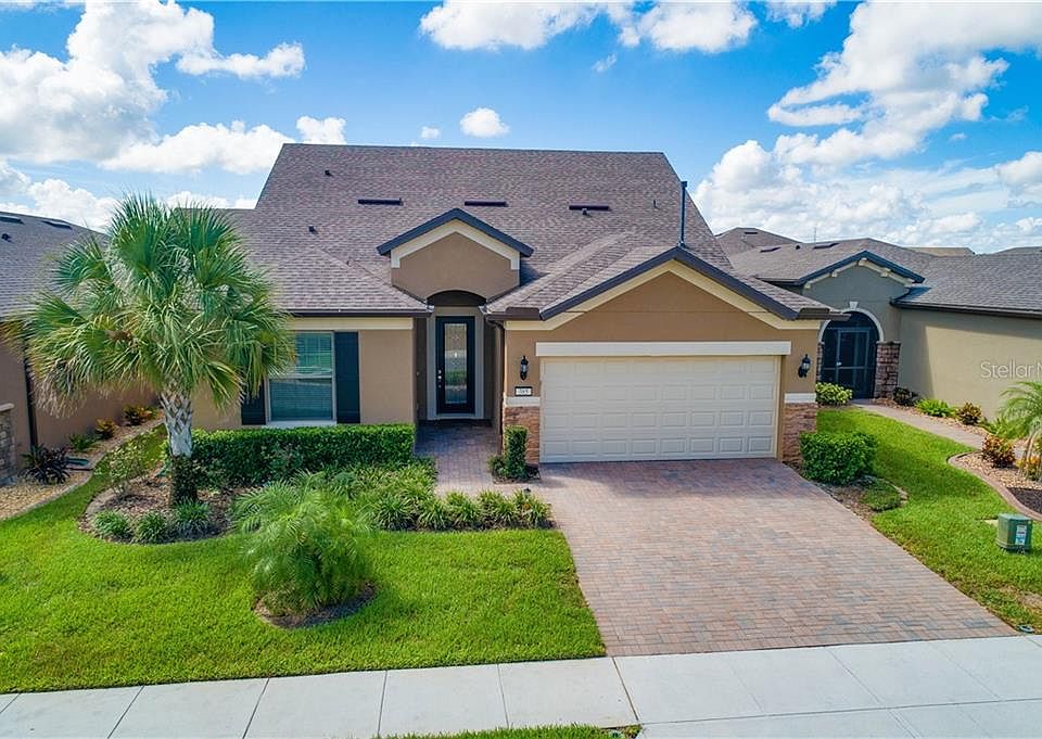 AMAZING and SPACIOUS home in the prestigious 55+ Active Adult Golf Community of Del Webb Orlando! With just under 2,900 Sq Ft of living space there is room for everyone, even out of town guests. Park your golf cart at this one, you won't want to miss it! The Stone Front elevation and brick pavers sets the tone for this UPDATED Florida Home. This home is perfect for entertaining with friends and family in the OPEN & BRIGHT Family room and Kitchen combo. The chef will fall in love with this MODERN KITCHEN featuring WHITE CABINETS, Stainless Steel appliances, GAS range, QUARTZ counters with sleek MARBLE backsplash. Gather around the QUARTZ ISLAND aligned with pendant lights where spreads of platters and drinks can serve your guests. Plenty of space in the Dining Room, located just off kitchen with views of the back yard and SCREENED PATIO. The large DOWNSTAIRS MASTER Suite also overlooks the backyard and features a Walk-In shower, Garden Tub, Dual Sinks and generous walk-in closet. On the first floor are three guest bedrooms, another full bath and vast laundry room. Head upstairs to the enormous BONUS ROOM, which is 19' x 27'. The second floor also features a guest bedroom and full bathroom. All TV's and TV mounts convey with the home. The Del Webb Montecito clubhouse is a state of the art facility featuring a fitness center with walking trails, restaurant & bar, an INDOOR & OUTDOOR POOL, pickle ball and tennis courts, shuffle courts and a dog park. Close to Orlando's Theme Parks: DISNEY WORLD, Legoland and Universal Studios. Just minutes to Posner Park which features tons of shopping, restaurants, Hospital & much more!