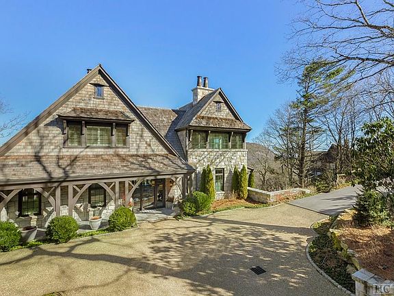 Nestled in the prestigious Highlands Country Club community, just moments away from the lively town of Highlands, NC, this stunning 5 bedroom, 5 and a 1/2 bathroom residence represents the pinnacle of luxury living. Crafted by renowned architect Sam Edgens, & impeccably furnished by the acclaimed Phoebe Howard, this home offers a perfect fusion of elegance, comfort, & functionality. Perched to capture breathtaking long-range mountain vistas, the residence boasts 12-foot ceilings on the main level, enhancing the sense of space & grandeur. The main floor hosts the primary suite, exuding tranquility and opulence w/ blackout shades, marble shower walls, & radiant heat floors in the ensuite bathroom. The walk-in California closet features a built-in safe, ensuring both convenience & security. Designed for culinary enthusiasts, the gourmet kitchen is a masterpiece, featuring honed quartzite countertops, a convenient bar w/ an icemaker & refrigerator, & top-of-the-line appliances including a Wolf 48-inch dual fuel range & a Sub-Zero refrigerator. A gas fireplace adds warmth & ambiance to the kitchen, creating an inviting atmosphere for cooking and entertaining. The adjacent dining room, open to the great room, offers a seamless flow of space & features large windows framing the picturesque views & an exquisite antique Venetian chandelier. Ascending to the upper level, a 2nd primary bedroom suite awaits, accompanied by another guest suite, an office, & a cozy "snug" room, providing the perfect retreat for relaxation or leisurely pursuits. The lower level of the home offers additional living space, including a sitting room and 2 guest suites, as well as ample climatized storage closets. Exquisite craftsmanship is evident with custom ironworks by Jason Smith adorning the staircase. Experience the epitome of luxury living in this meticulously crafted residence, where every detail has been thoughtfully curated to elevate your lifestyle in the heart of Highlands.