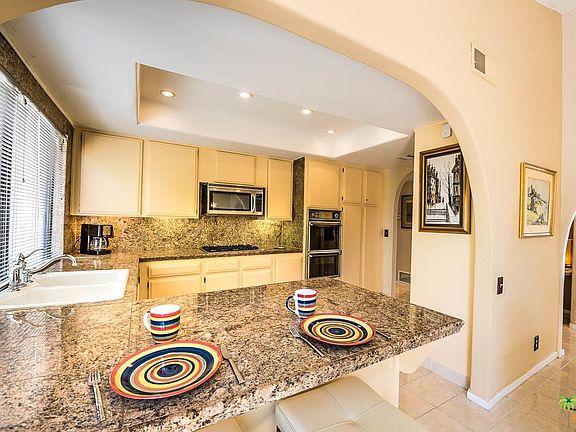 Welcome to Sundance Villas, arguably one of the rarest communities to come to market with available listings. Originally built to house the Dallas Cowboys NFL Team, 385 Dominguez Rd. has all the amenities a buyer could possibly want. The property consists of a 2-car oversized garage, 4 outdoor patios, 3 bed/baths (all en-suite), explosive mountain views, private pool & spa, expansive floorplan, gas-lit fireplace, and decorative archways; all this on one level without any steps, up or down! The best part is its prime location, conveniently situated close to Downtown, but also set apart from the commercial district for added privacy. Traveling into town from L.A. along Hwy. 111, Sundance Villas is one of the first to welcome you into Palm Springs, shortening your commute by significant time! One of only 19 units, CASH GENERATING Villa Encantada has a historied, long-standing relationship with the City of Palm Springs and approved for short term rentals (less than 30 days). A rare find!