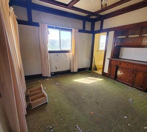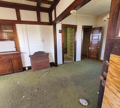 VERY RARE OPPORTUNITY - 2 story DUPLEX. Top floor has open living room with encased opening that could be dinning or converted back into bedroom. Original built-in hutch with open beams giving the living room its charm. Kitchen in top floor has had some demo work already and appears to have original wood floors. There's a room off kitchen that could hold stackable washer and dryer or be a pantry. The ground level has a separate entrance that opens up into another kitchen area with cellar for storage. The living room has a drop down ceiling and back entrance to deck. There's a very large bedroom, bathroom and walk in closet.