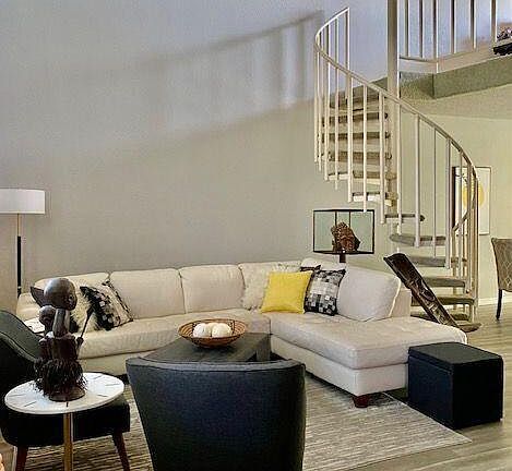 Stylist urban loft located in one of Phoenix's charming Historic Districts. Desirable end unit. Upon entering you're greeted by dramatic ceiling heights, hip sunken conversation pit w/original freestanding fireplace, spiral loft staircase and a fabulous open floorplan. Private patio is extended and larger than most in the complex and features a newly roofed patio cover and clean, modern landscaping. Over the past 2 years this home has been meticulously renovated with new kitchen and bath; featuring quartz countertops, stainless appliances, new cabinetry and interior doors, built-in wine bar, new paint in and out, new LVP and tile flooring, new lighting w/dimmers, new hot water heater and much more.. Downstairs flex-room is currently set up as large home office but can be easily used as a den or second bedroom w/ensuite bath and closet. Upstairs loft bedroom includes walk-in closet and ensuite bath. Super central Phoenix location convenient to the Melrose District, Central AVE shops, restaurants and 2 Light Rail stops for easy airport and downtown access.