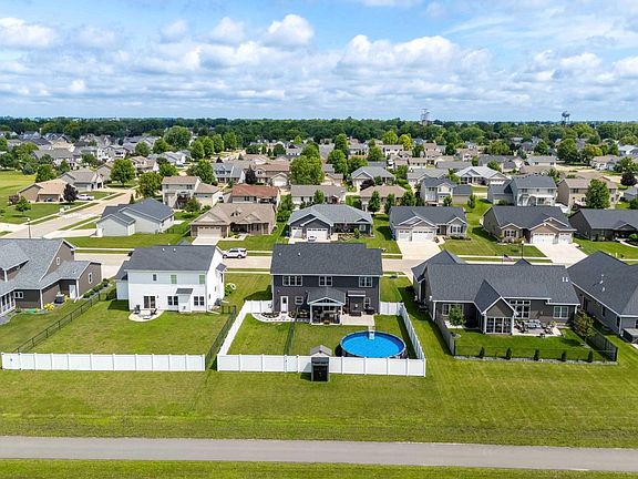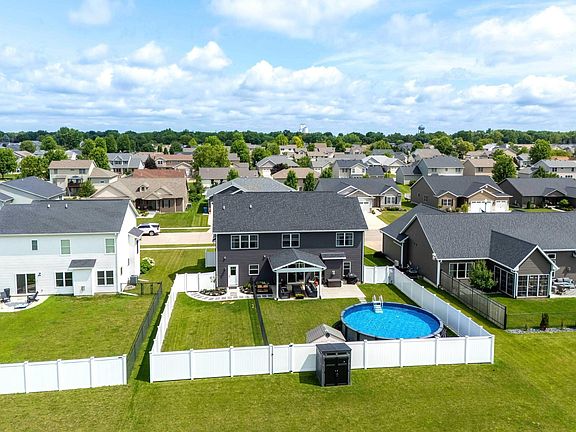 This stunning 5-bedroom, 3.5-bathroom two-story home offers spacious living with modern finishes. The large kitchen features a walk-in pantry and flows seamlessly into the dining area. Enjoy hardwood floors throughout the main floor, a large laundry room with a soaking sink, and a fully finished basement perfect for extra living space. The oversized primary suite includes a luxurious bath with dual vanities and a tiled walk in shower. Step outside to your peaceful backyard, complete with a covered patio, the ideal spot for relaxing or entertaining. The above-ground pool adds a perfect touch of fun and relaxation. Two sheds and an oversized 3-car garage provide plenty of storage. This home is a must-see offering the perfect blend of style, space, and convenience, plus it has been meticulously maintained!