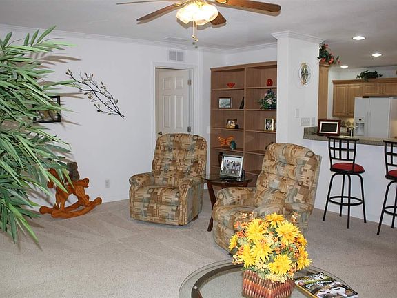 Gorgeous 3BR/2BA Glen Eagle model situated close to the clubhouse. This home has many lovely upgrades including six-panel interior doors; interior hardware; upgraded carpet; additional can lighting; larger 20x20 garage; 15x8 front porch; 10x10 patio; & 10x10 screened porch with a private, wooded backyard & lake views. Spacious open floor plan and dining area. Enjoy entertaining in this kitchen with a large bar area and chef's island. You will feel like a King or Queen, and cooking with be a delight... ceramic decor walled back splash is the elegant upgrade to accent the ceramic countertop edging in the kitchen. Deluxe cabinetry trim package in kitchen & raised countertops in the baths. Large master suite with walk-in closet; double vanity ceramic edged counters; & shower with seat. Low taxes and the lifestyle you've been dreaming of here at the beach. This home has a fabulous lake view that is the envy of all; the upgrades and personal selections of the home inside and out will make evening sunsets and your outdoor deck your very own paradise at home. From the home to the community, you will never want to leave! Lakeside Crossing offers an active over 55 community with amenities and an activities director and many social opportunities you won't think of missing. You will love the year-round enjoyment of the heated, resort-style swimming pool, & spa along with an adjoining pavilion. Enjoy natural spring-fed lakes - fully-stocked for fishing from community dock or even YOUR back yard. Boating with convenient paddle boats. HOA includes yard maintenance & edging. From the workout center to tennis courts , pickle board, and shuffleboard, your new lifestyle can be the dream life you imagined with sunshine and the beach.