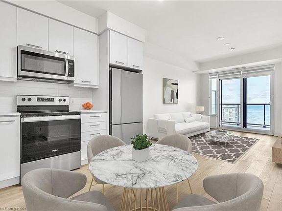 Experience waterfront living at its finest in this stylish Float Model suite at the sought-after Odyssey Condos by Rosehaven in Grimsby-on-the-Lake. This beautifully appointed 1-bedroom+ den, 1-bathroom condo offers approximately 698 sq ft of bright, open-concept interior space, and an over 150 sq ft massive north-facing balcony -perfect for enjoying unobstructed views of Lake Ontario and the Toronto skyline, including the CN Tower. Furthermore, enjoy serene lakeviews right from your living and bedroom. Designed for modern living, the unit features floor-to-ceiling windows, in-suite laundry, sleek finishes, and a highly functional layout, with the spacious den being perfect for a home office or guest room. The Odyssey offers luxury lifestyle amenities including a rooftop terrace, fitness & yoga studio, party room, Sky-Lounge, pet spa and more. Steps to the lake, beach, waterfront trails, and restaurants. Additionally, being minutes away from shops, QEW, and the future GO Station, you are getting "Luxury, location, and lifestyle". Come check it out, you'll love it!