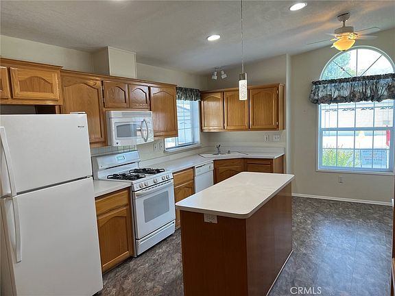 Move in Ready, Creekside Home in Highland's premier 55+ community. This 2000 Hallmark home, approximately 1550 SF, 2 bedrooms, 2 bath, with attached 2 car garage. Backs to our beautiful walking trail with creek, koi pond & mature trees make you feel like your miles away! This home’s exterior has just been painted and sports a brand-new roof and beautiful front landscaping that is maintained by the park. The front entryway leads to a huge living room complete with ceiling fan, fireplace and a sliding glass door that leads to your gorgeous back porch. The expansive kitchen with island and breakfast nook is amazingly bright, includes gas stove, microwave, refrigerator, and dishwasher, with loads of pantry and cupboard space. French doors open to the den/ office, right off the dining room. Master bedroom has an oversized, mirrored closet, master bathroom features an easy-to-access glass door low step in shower stall, double vanity and another large linen cabinet. Guest room has large closet with sliding doors just steps across to guest bathroom. Priced to sell, so don’t miss out on this great opportunity! Call to schedule your tour of this gorgeous home Today!