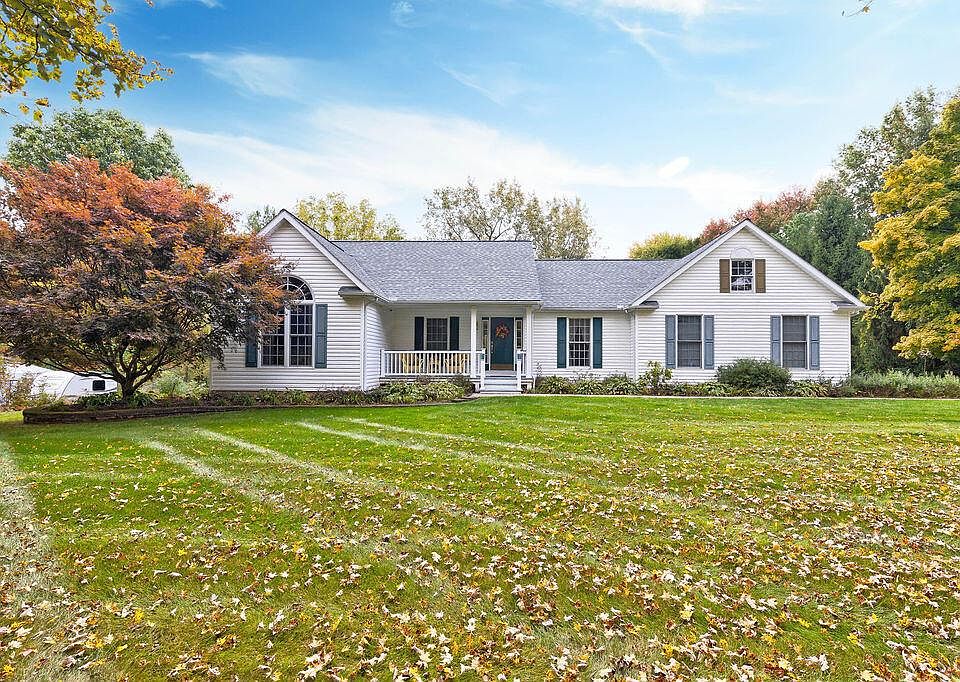 Custom built ranch home located on 1+ acre lot backing to mature trees with a stream. Flexible floor plan with Vaulted Great Room, open Kitchen w/ bar seating, and Dining Room w/ 12 ft doors to access balcony and screened porch. The First Floor boasts hardwood floors; a Primary Suite w/ private bath, walk-in closet, and convenient laundry space; 2nd bedroom & hall bath with tub/shower; and flexible room that could be a den, play rm, craft rm, or potential 5th bedroom. Finished Lower Level has 2 addtl bedrooms with large closets, entertaining space with wet bar, family room area, & full bath. 40x24, 3-car attached garage with hot/cold water, heated, and insulated & w/bonus room above. 500 sqft paver patio, professional landscaping, fenced garden, and shed w/concrete floor.