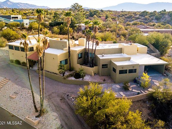 Custom home w/mountain & city views nestled high on the ridge in desirable 85718 zip code! Your personal sanctuary unfolds as you enter from the circular drive. Exquisite design & elegant features t/out incl. steam room, see-through fireplace, tons of natural light & views from every window! New in 2020: HVAC units, H2O heater, roof just re-coated (with 2-year warranty) & exterior freshly painted! Plus all updated dual-pane windows! Kitchen is perfection w/rich cabinetry, Sub-Zero refrigerator, double ovens, stone counters & breakfast bar. Oversized owner's suite boasts fireplace, exercise room & luxurious bath w/dual vanities, steam room, separate shower & jetted tub. Two-bedroom guest wing + downstairs guest quarters. Private backyard oasis complete w/pool, BBQ & breathtaking views!