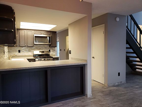 The Swiss Manor townhome has been recently renovated. Upgrades include new atrium doors with built in blinds, security screen doors, composite decks, new roof in 2019, new fence and rear patio, updated kitchen and baths, water heater and new gas fireplace. Move in ready. Located on the base of Mount Elden with hiking and biking trails near by.