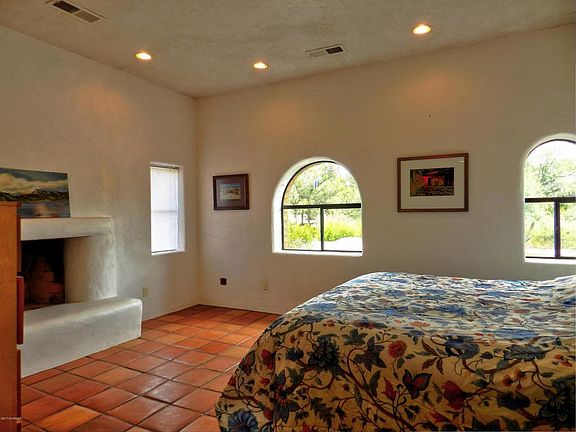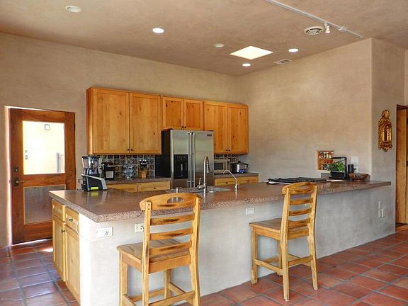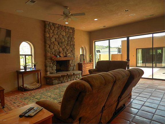 A must see, one of a kind home in a secluded little known part of N. Camp Verde on 1.38 acres. This Southwest style home has been completely remodeled by Bill Ralston, a highly respected and sought after custom home builder in Sedona. The home has 10' ceilings, a split floor plan with 2 master bedrooms, one with a fireplace and private courtyard. Both bedrooms have walk-in closets with bathrooms featuring the finest rock, stone and tile. Kitchen counters and breakfast island are made from poured, colored concrete. Floor to ceiling rock fireplace in living room. Bedroom walls are painted stucco. Clay plaster everywhere else. Saltillo tile floors. Custom built doors and cabinets throughout home. Central Vac in home and the 792 sq.ft. detached garage which has a 10' ceiling and 18' door