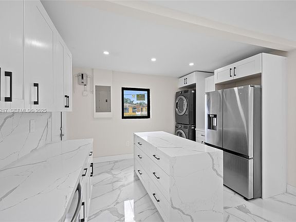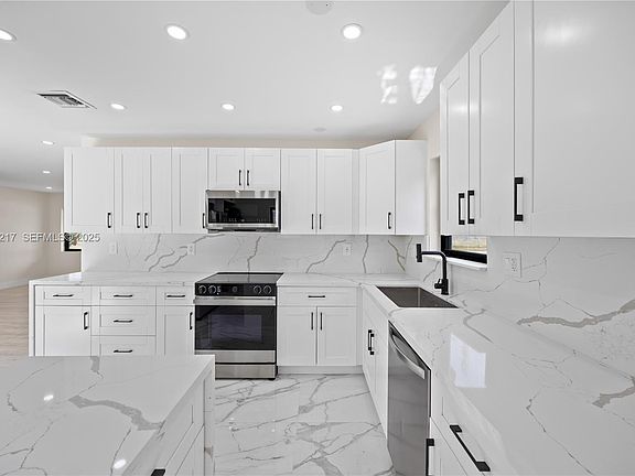 Renovated 3/2 w/ open kitchen with shaker cabinets, callacata counters & island, New stainless appliances, and Brand new W&D. Stylish updated baths. Brand NEW 3 dimensional Shingle roof, and Brand NEW Eco windows Impact windows!! Smart entry lock w/ camera ring. Remote motor powered car gate! BIG backyard! MUST SEE