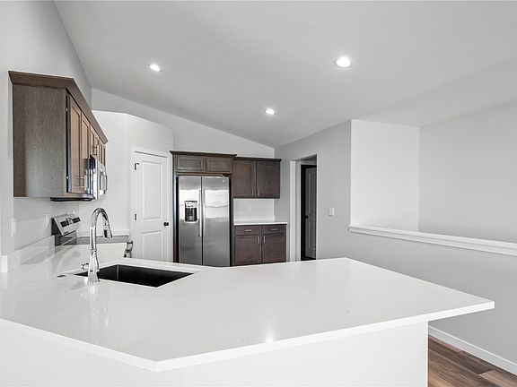 Brand new ranch-style condo! The main level features luxury vinyl plank flooring and vaulted ceilings throughout. The spacious kitchen is equipped with a quartz countertop and an angled breakfast bar. The primary bedroom includes a private bathroom and a walk-in closet. Additionally, there is a second bedroom on the main level, along with a shared bathroom. The finished basement boasts a large recreation room, a bedroom, and a third full bathroom, as well as ample storage space. Enjoy a covered deck at the rear of the unit. This condo is situated in a quiet neighborhood, conveniently located near shopping and schools.