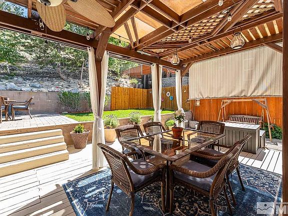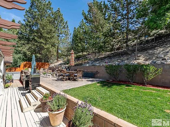 Welcome to your dream home at 3850 Raven Way in the scenic heart of Reno, NV. This updated single-family residence boasts an idyllic .360-acre lot, where serenity meets convenience, perfect for families seeking a blend of comfort and style. Step inside to discover a cozy sanctuary featuring three spacious bedrooms, including a luxurious large master suite with two walk-in closets, a soothing garden tub, and a separate shower stall., The home's allure is enhanced by stylish laminate flooring and tile, complemented by sleek stainless appliances, gleaming granite slab kitchen counters, and newer cabinets providing ample storage and counter space. The open-concept family room invites gatherings under high ceilings with skylights that bathe the space in natural light, while a ceiling fan gently stirs the air. Entertainment and relaxation extend outdoors to a park-like backyard that's a true slice of paradise. Enjoy the private pergola and the calming sounds of a waterfall, a viewable delight from the master bedroom as well. Additional upgrades include a new roof in 2023, new street and driveway in 2024, high-quality Pella and Milgard windows, a 220-volt outlet for a hot tub, and freshly painted eaves and garage door. Nestled in a desirable cul-de-sac with striking views that make you feel like you're in a treehouse, this residence offers a tranquil retreat without compromising on urban amenities. Make 3850 Raven Way your forever home and create cherished memories in this peaceful enclave.