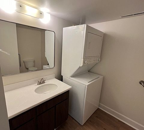 Rare opportunity to rent a 2/2 condo in Carmel with a two car garage and community pool. Newly remodeled. New paint, wood floors, countertops, and appliances. Unit includes a stacked washer and dryer within the unit. Carpet is upstairs only. Call for a viewing appointment. Available now. Shatto Rentals