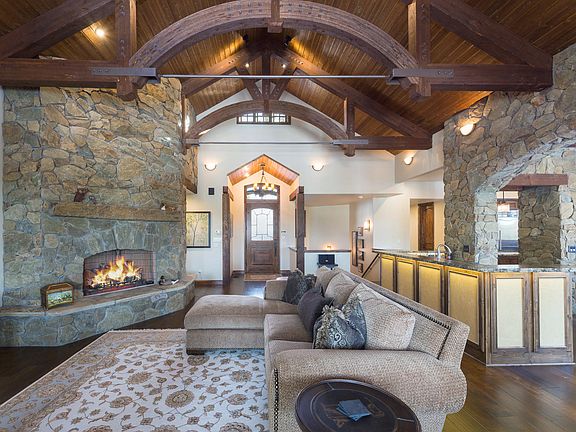 - Exterior: Wood Siding, Stone