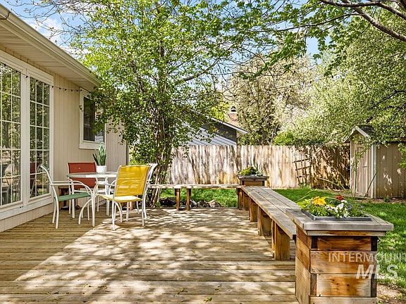 Opportunity meets location in this meticulously maintained single-level home tucked away in Southeast Boise. Boasting numerous upgrades, it delivers a comfortable and stylish living experience. Inside, you'll be delighted by the fresh interior paint, renovated bathrooms, and new vinyl wood plank flooring. With 3 bedrooms and 2 bathrooms plus office space, this home provides ample living space. Enjoy dinner by the recently updated wood-burning fireplace, which adds a touch of elegance and character. Includes a true primary suite with a walk-in closet and en suite. The bathrooms have been beautifully upgraded. Step outside to the deck, complete with built-in benches and planter boxes, offering a serene spot for outdoor relaxation in the privacy of the fully-fenced backyard. Addtl. storage space is provided by the detached shed, while the attached 2-car garage includes a convenient built-in workbench and storage shelves. Don't let this exceptional home with modern upgrades, functionality, and style slip away!