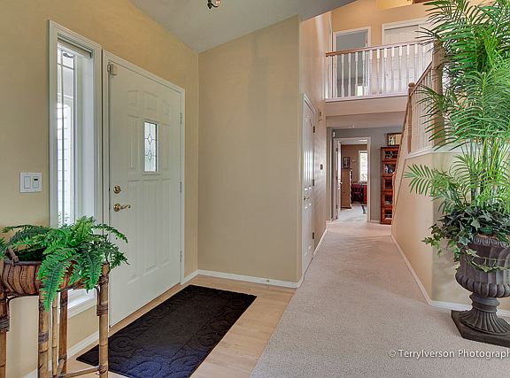 This 4 bedroom 3 bath has a great floor plan with a private back yard and low maintenance front yard and lots of light. There is extra storage space in attic above the 3 car garage which is accessed through the upstairs bedroom and the garage. Great for entertaining friends or family. Master bedroom has a large master bath. 2 upstairs bedrooms share a full bath. Main floor bedroom can be used as office or bedroom next to full bath.
