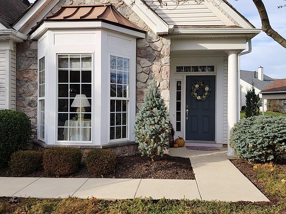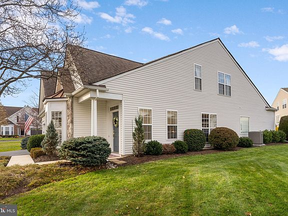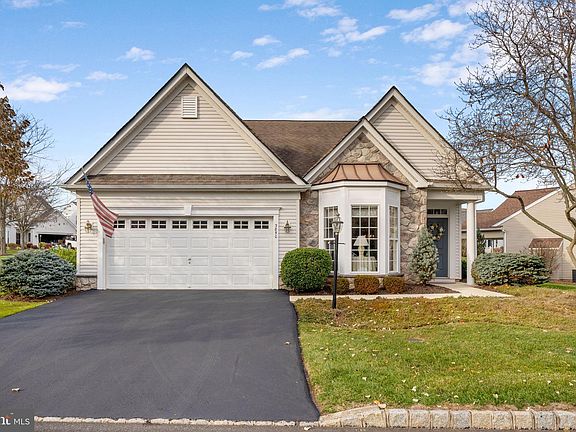 Here is your opportunity to own an exceptional, highly desirable, Mayfield model located on a spacious premium corner lot in the award winning Traditions at Skippack, ACTIVE ADULT COMMUNITY. As you enter the dramatic two story foyer you will experience a very tastefully decorated home with harmonious neutral shades throughout the home. Off of the entrance foyer are neutrally carpeted adjoining living and dining rooms, with crown molding and wainscoting in the living and dining rooms, and around the wonderful bay window in the living room. The beautiful walnut hardwood flooring in the foyer, continues down the hallway to the spacious kitchen. The eat in kitchen area includes classic ceramic tile flooring, beautiful 42” premium maple cabinetry, Corian surfaces on the counter, wonderful complimentary cream appliances, and a large Corian surfaced island for dining and culinary activities. Large windows in the kitchen dining area with an open scenic view of the oversized lot enhance this bright and cheerful kitchen. Adjacent to the spacious kitchen dining area is an expansive family room with an extended height 10' ceiling, a ceiling fan, and a cozy white marble highlighted wood burning fireplace to enjoy on the cold winter days. The family room has neutral carpeting for a cozy feel. The sliding glass doors in the family room provide access to a carpeted and screened patio to enjoy the scenic view on beautiful summer days. The large first floor master bedroom with a sitting area, with ceiling fan, is conveniently located off the family room. The many windows in this bedroom provide a bright and cheerful atmosphere. The luxurious neutrally decorated master bath provides a wonderful soaking tub, a double vanity, and a large ceramic tile stall shower. The first floor also includes a very convenient butler's pantry, guest powder room, and laundry room with cabinetry and a storage closet. The second floor includes two full sized bedrooms with neutral carpeting, a full neutral décor bath, and a large carpeted loft area for an office, or additional relaxation space. This area is also a great retreat for guests to relax and enjoy some privacy during visits. There is also a large storage area accessible from one of the bedrooms. The home features a multi room ceiling sound system to enjoy entertainment throughout the home. Hunter Douglas Duette honeycomb shades are on most windows throughout the home. The finished 2 car garage has a utility sink with hot and cold water, and an insulated garage door to maintain a comfortable temperature, and many storage shelves. The 3 ½ year old Lenox Elite HVAC system has an Aprilaire whole house electronic air filtering system. The 2 car driveway was resurfaced 3 ½ years ago and seal coated for long life. The planting beds surrounding the home were professionally designed and meticulously maintained to enhance the exterior beauty of this special home. This exceptional community provides residents with a beautifully decorated clubhouse with great room, library, exercise room and billiards room. A large heated community salt water pool is provided for residents and guests to enjoy in the warm weather. A convenient walking path winds through the community to exercise safely, and a tennis and pickle ball court. There are many nearby shopping and dining areas in the charming Skippack Village, and the expansive Provincetown shopping, dining, and entertainment complex in Collegeville. This “one owner” home has been meticulously maintained and is truly in “move in” condition. If you’re looking for an exceptional home in this great community, act quickly, it won’t last long!