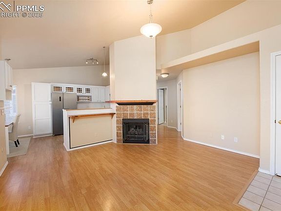 Welcome to this bright and spacious 2-bedroom, 2-bathroom condo in the highly sought-after gated community of Strawberry Fields! Offering 1,084 square feet of well-designed living space, this move-in-ready home features an open-concept layout that seamlessly connects the living, dining, and kitchen areas. The cozy gas fireplace adds warmth and charm, while the covered balcony with additional storage extends your living space outdoors, making it the perfect spot to enjoy Colorado’s scenic views year-round. The primary suite boasts a large walk-in closet and an en-suite bathroom, providing comfort and privacy, while the generously sized second bedroom also features a walk-in closet and easy access to the second bathroom. Recent updates include newer flooring and a stainless steel refrigerator. Convenience is key with in-unit laundry and an included detached carport. Residents of Strawberry Fields enjoy a low-maintenance lifestyle with HOA covering trash, snow removal, landscaping, and exterior maintenance, along with access to top-tier amenities, including a pool, hot tub, fitness center, and tennis courts. Located just minutes from Fort Carson, Cheyenne Meadows City Park, I-25, shopping, dining, hiking trails, and Cheyenne Mountain State Park, this condo offers the perfect balance of comfort, convenience, and community. Don’t miss this fantastic opportunity—schedule your showing today!