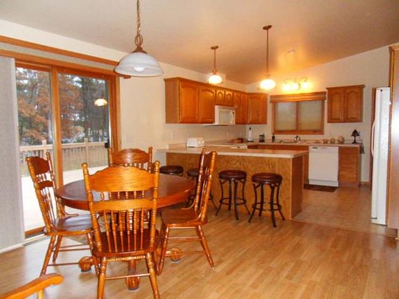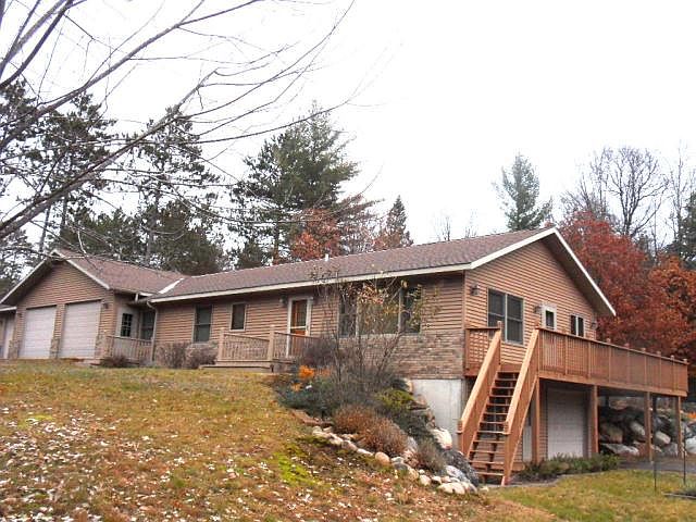 Handicap Accessible!!!Very Spacious with Enormous Potential! This 2004 2 bedroom 1 full bath spacious country home features a large kitchen /dining area with breakfast bar and vaulted ceilings opening to an 18x30 foot wrap deck and big backyard with garden space. There is a large master bedroom, huge main level bath with double vanity, separate shower, and soaking tub. The spacious living room offers lovely wooded views and the other roomy main floor bedroom has lots of closet space. The large mud/laundry room offers plenty of storage with cabinets and closet and there is an oversized attached 3 car garage. The lower level has a partially finished family room with walkout entrance, roughed in full bath, roughed in bedroom,workshop, and an additional drive under garage with space for all the toys from boats to snowmobiles and extends the length of the house. . Country Living and Tons of Space! Come take a look!