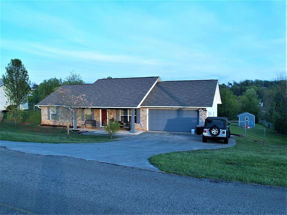 Great home with open living room and dining room. Living room has wood burning stove to relieve the winter chill. Kitchen is open to dining room. Extra large pantry and large laundry room. Size of master bedroom is sure to please and has walk in closet. Covered front porch, 2 car garage, and huge fenced in rear yard with gate for vehicle access and nice views plus an awesome 10 x 12 storage shed. Such a great location also, just minutes to town and easy access to 321 and 411 so you can get anywhere rather quickly. New roof in 2011. Home warranty offered with acceptable offer.