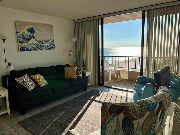 A rewarding escape for year-round living or as a vacation property! The Enclave on the Boardwalk in Atlantic City has it all! You will love this turn-key, beautifully updated condo! The sellers were very creative with structural improvements including re-designing and enlarging the full bathroom. They added a hallway to a very large full bathroom with a huge standing shower complete with transom window. The entire condo has gorgeous tile flooring that emulates wood. Enjoy the magnificent Atlantic Ocean & Southern views on the double balcony. Sit outside with morning coffee and listen to the sound of the waves. Evening sunsets are spectacular! Such a spacious condo with open-concept living room, dining area, powder room & kitchen with white appliances. The living room and bedroom has floor-to-ceiling glass windows. In the living room, the couch is also a sofa bed. The primary bedroom is large and has ocean views from the queen bed. The Enclave, located in the University District with Stockton, is a modern, well managed building with 24-hour security, indoor parking garage for one car in summer and two cars in winter, outdoor pool in summer, indoor pool with two whirlpool spas open all year, fitness center, saunas, wifi in common areas, billiards & ping pong. AtlantiCare Urgent Care is right around the corner. Walk on the boardwalk and/or relax on the white, sandy beach! The beach is huge, clean & such a great part of living at the Enclave. Summer events include bagel breakfasts, holiday bbq's & more! There is a current special assessment of $134.40 per month for improvements to the building. Easy to show!