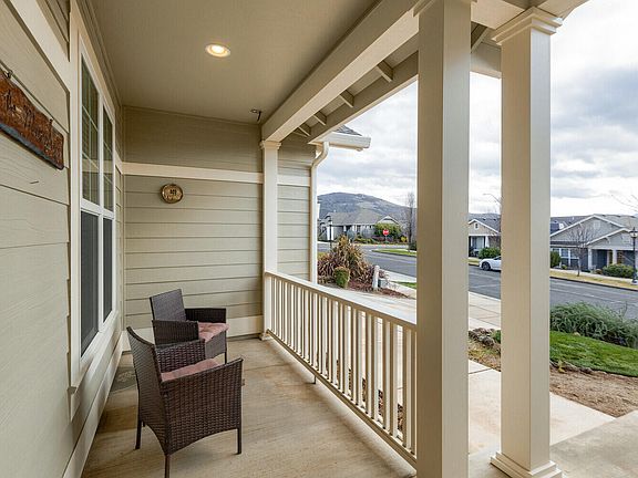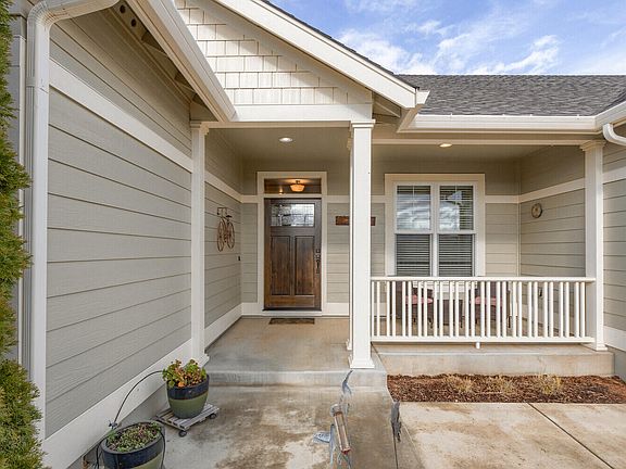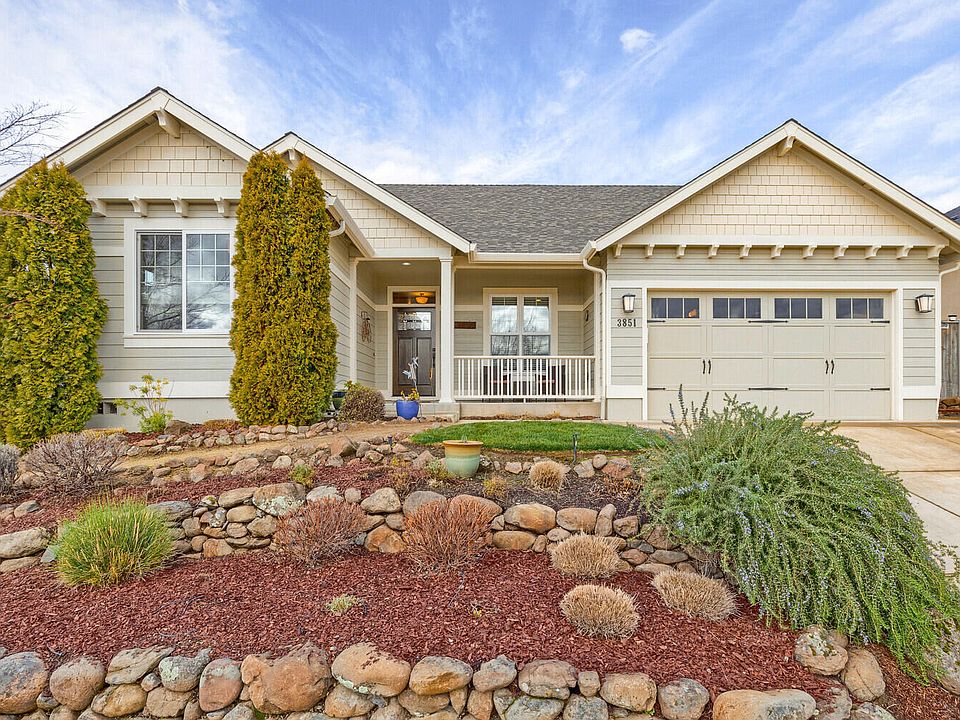 Craftsman style Summerfield home with four bedrooms and three full baths. Separate dining area off of the entry could also be used as an office space. The primary suite and two bedrooms are located on the main level. Upstairs there is a large bedroom and full bath which could be a second primary suite. Open floor plan with split bedrooms. White painted cabinets, granite counters and double oven in the kitchen. The great room has gas fireplace, built-in cabinetry and coffered ceilings. Hardwood floors throughout main living areas. All tile bathrooms. Primary suite has double vanity, large walk-in shower, soaking tub and walk-in closet. The front porch has territorial views. The backyard has a covered patio, low maintenance landscaping, sitting area with pavers, and a nice outdoor shed. Located a few blocks from the Summerfield Neighborhood Park. Vacuum system, refrigerator, washer and dryer are included.