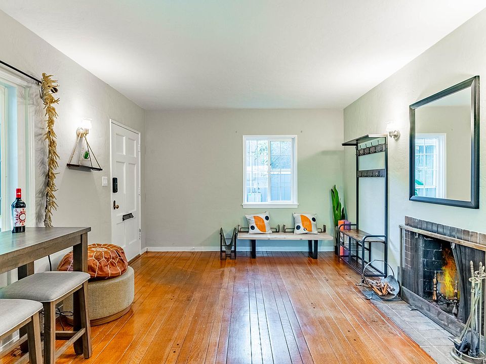 Come see this 2bedroom furnished mid-century craftsman bungalow transformed into a boho-chic contemporary space with 2 cozy queen bedrooms that open onto a firepit with beautiful deck views of the surrounding hills tucked away from the nearby vibrant urban-surburban Laurel neighborhood. Owner pays water and garbage. Utilities about 200/mo.