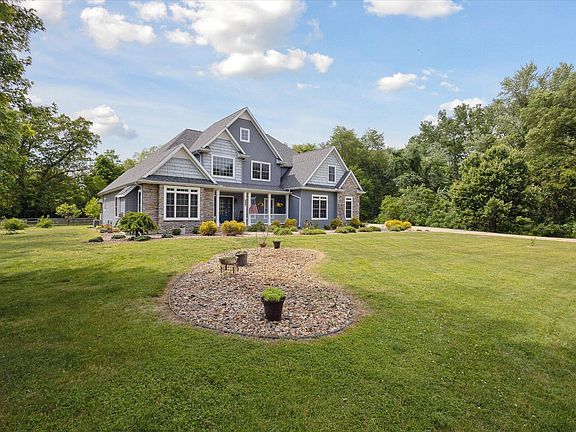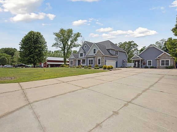 Ready to be amazed with this custom built one owner over 6000 sq ft home, detached 840 sq ft flex office space and 50 X 80 pole barn situated on 3 acres? Welcoming 2 story foyer with cat walk over looking the living room, dining room and foyer. Great room with floor to ceiling gas stone fireplace. Open concept kitchen with breakfast area, maple cabinetry and large pantry. Bamboo flooring in the living room. Main floor primary bedroom suite includes a fireplace, large closets, whirlpool tub and separate double shower head shower and additional flex area separated with double doors. Main floor laundry. Beautiful open staircase leading to upper level where you will find 4 additional bedrooms and 2 full baths. Finished basement will make this home complete, with 2 egress window bedrooms, full bath and kitchen with appliances and additional laundry room. Did I mention the barn with 6 horse stalls, tack room, shop area and loft and exterior covered area or the detached flex building that has been used as a home office complete with a full bath. Back deck with gazebo and hot tub over looking fenced areas. Energy efficient geothermal and GFA furnaces. The property has so much to offer and many options you can't fill it all in the description. Contact your agent today to set up your personal tour.