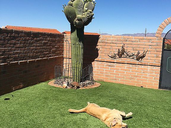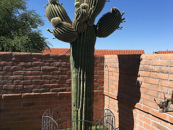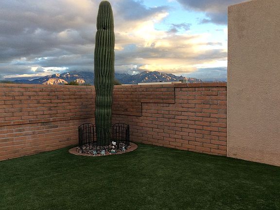 * Everything has been well thought out; from the covered tiled walkway into the home, to the artificial turf, saguaros and paver patio to enjoy the mountain view in the back. Lovely gardens grace the walk way welcoming your visitors and the nice mountain view invites you to enjoy life. 2 bed, 2 bath, and 2 car garage that has no neighbor behind or on one side. View, space and privacy flood in thru each window. The Canoa Hills park is only a moment to the north and the San Ignacio golf course, voted best golf in GV, is just a block or so to the south. This is the perfect snowbird or downsize home just waiting for you to call home sweet home.