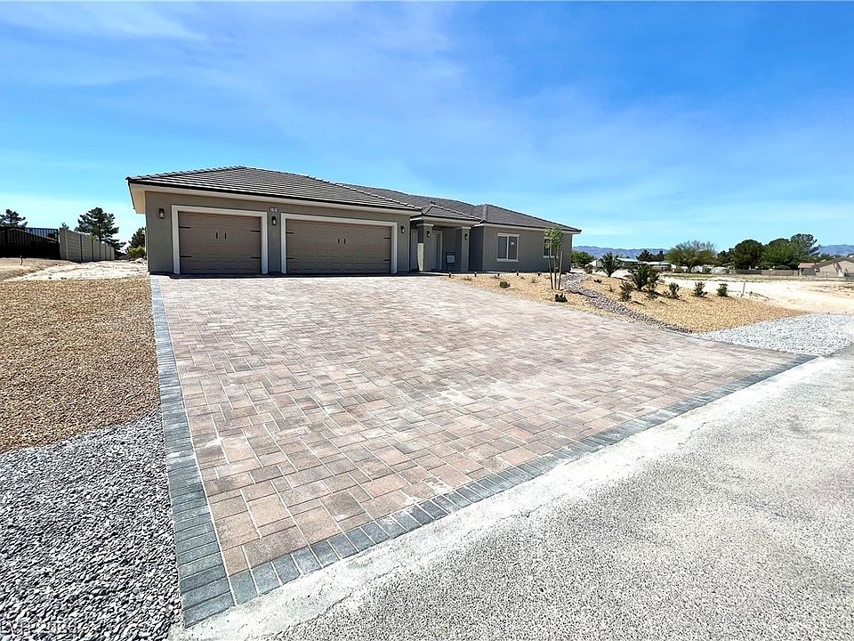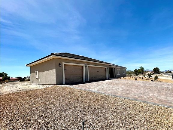 This gorgeous new home, is about 2-3 weeks to completion! There are 4 bedrooms, or 3, with an option for an office on the opposite side of the spacious primary. It will come standard with luxurious wood plank flooring, and paired with upgraded textured carpet in all bedrooms There is an open concept kitchen with a huge walk in pantry, a private laundry room complimented with a large stainless steel sink, and beautiful cabinets paired with highly durable 2-tone quartzite countertops . The primary's bedroom has a freestanding tub and a substantial walk in shower. We have included elevated designer finishes that other builders typically consider upgrades. Enjoy the beautiful mountain views on this over 1 acre corner lot in one of the most sought after areas in Pahrump!