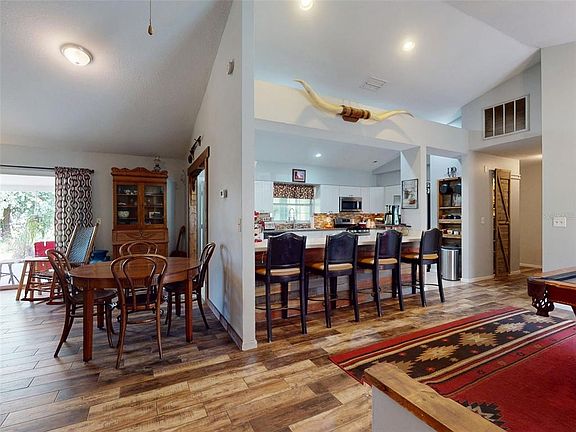 Completely renovated 4-bedroom, 2-bathroom home on a private oversized lot! This beautifully updated residence blends modern comfort with timeless features, offering a warm and welcoming atmosphere from the moment you step inside. A charming wood-burning fireplace anchors the spacious living room, where sliding glass doors open to an extra-large covered lanai with an insulated roof—perfect for year-round outdoor living and entertaining. The open floorplan features a desirable split-bedroom layout, ensuring privacy and convenience for family or guests. The expansive kitchen is a true centerpiece, boasting a gas stove, farmhouse sink, stainless steel appliances, abundant cabinetry for all your kitchen essentials, a roomy closet pantry, and an oversized breakfast bar ideal for casual dining or hosting gatherings. The primary suite offers a relaxing retreat with a generous en suite bathroom complete with a whirlpool tub and a private water closet. Thoughtful updates and quality construction add peace of mind, including new tile flooring (2022), updated piping (2019), and major system replacements in 2016—roof, A/C, gas heater, gas water heater, and appliances. Built on a double-rebar slab with solid poured block construction, the home also features a freshly painted exterior (2025) for a crisp, modern look. Step outside to discover your own private oasis. The oversized lot is surrounded by mature landscaping and a flourishing food forest featuring a fresh garden, fruit trees, grapevines, vegetables, herbs, and much more—ideal for those seeking space, privacy, and a sustainable lifestyle. Located just 6 minutes from Florida’s Turnpike, this home provides quick access to commuting routes while offering the tranquility of a secluded setting. Move-in ready, beautifully updated, and truly one-of-a-kind—this property is a must-see! --> TO VIEW A VIRTUAL TOUR OF THIS PROPERTY VISIT: https://tinyurl.com/3851-Thistlewood-Way