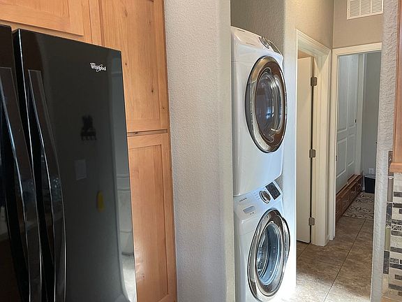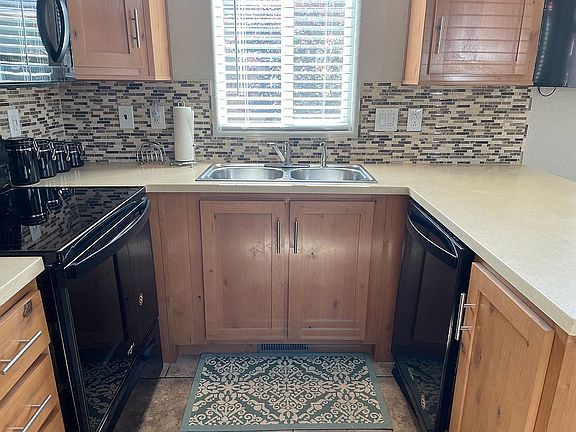 This resale home is the Woodfield Cottage model. It features beautiful interior features such as shaker-style cabinetry, recessed lighting, 2” faux wood blinds, plant shelves, laundry area with stackable washer & dryer included, built-in entertainment cabinet, built-in dresser bay and covered front porch. The upgrades include a 2nd bedroom, knotty alder cabinetry, ceiling fans, 9-1/2' flat ceilings, French door front entry, upgraded black appliances with dishwasher, Corian countertops, mosaic backsplash in kitchen and bathroom, and a paver driveway. A large transom window over the French door pours the natural light into this home. This home is sold furnished