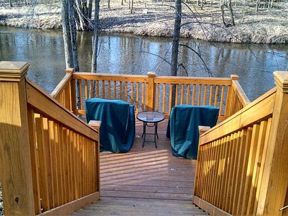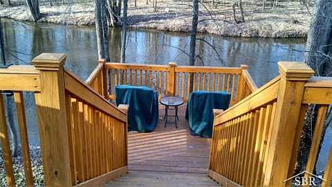Right on the Chippewa River: This Bermed home has 3 bedrooms on 10 acres! There is frontage on both sides of the Chippewa River with a very Private setting. Living room, Kitchen, Dining Room, bath, Laundry room, Appliances included (dishwasher, refrigerator, electric range/oven). Sliding glass doors looking out to Deck that views the river. New Field stone on back of home. There is a 3 car detached garage that is 2 story, heated, workshop. From the deck you will see Deer, Turkey and Duck!