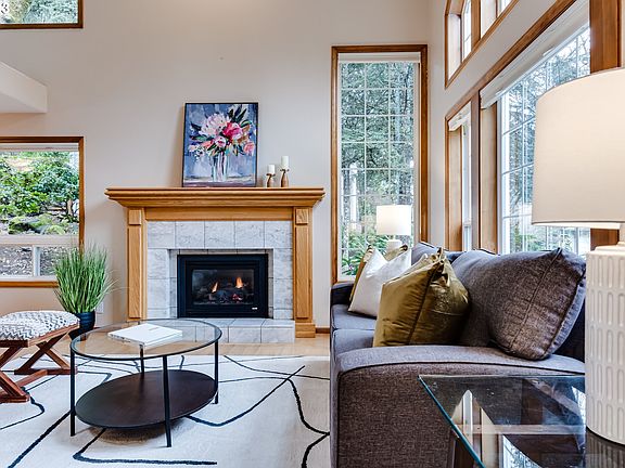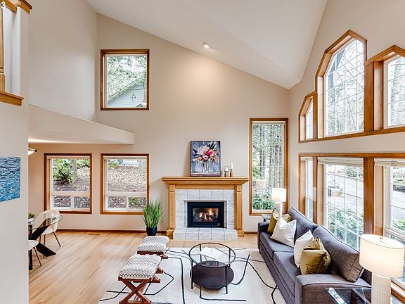 Sophisticated serenity in this move-in ready SW Hills Contemporary home! Dynamic design with a versatile floor plan for comfortable living and swanky entertaining, inside and out. Meticulously maintained with 4 bedrooms, 3 full baths, and numerous updates. Light and bright with soaring vaulted ceilings, walls of windows, and multiple skylights. Inviting living room with a cozy gas fireplace and tranquil views from every angle. Two dining areas, one with built-ins and one with views of the treed backyard. Gourmet kitchen with stainless steel appliances, ample working space, and lots of windows. Generous family room with great separation of space and extra storage. Primary suite with walk-in closet and a luxurious bath featuring a soaking tub and a walk-in shower. Three additional bedrooms and two more full baths provide ample room for family, guests, or home work space. Main level bedroom has exterior entrance to the peaceful backyard with an expansive patio for outdoor dining. Attached two car garage and abundant storage. Ideally situated on a quiet street in a lovely neighborhood with a close commute to town. This home delights in every season with it's picturesque surroundings and connection to nature!