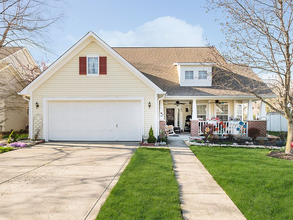 Welcome Home to Carmel! The oversized covered front porch welcomes you into this well maintained 3 bed 2 bath ranch in The Villages at Weston Place. You'll love the open-concept living & dining room featuring vaulted ceiling & fireplace. Kitchen includes SS appliances with additional breakfast nook. Updated baths including double sinks, water closet, & large custom WIC in primary. The 3 seasons room offers additional space. Finished heated/cooled garage. New water heater in 2022 & additional insulation added throughout. Enjoy neighborhood amenities: Pool, Walking Trails, Sports Courts & Fields. Convenient access to Highways, Shopping, Dining & Carmel Schools! All appliances stay. Furnishing negotiable.